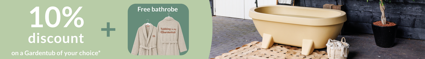 Speciaal voor het voorjaar ontvang je 10% korting + een gratis badjas bij aankoop van een Gardentub. Accessoires zijn uitgesloten van deze actie.